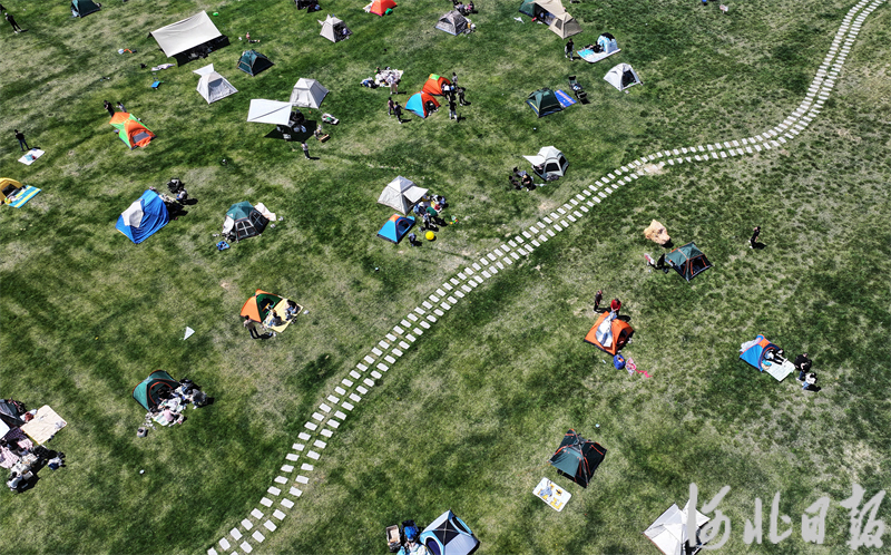 2024年5月1日,游客在河北省张家口市宣化区天籁谷露营基地游玩。