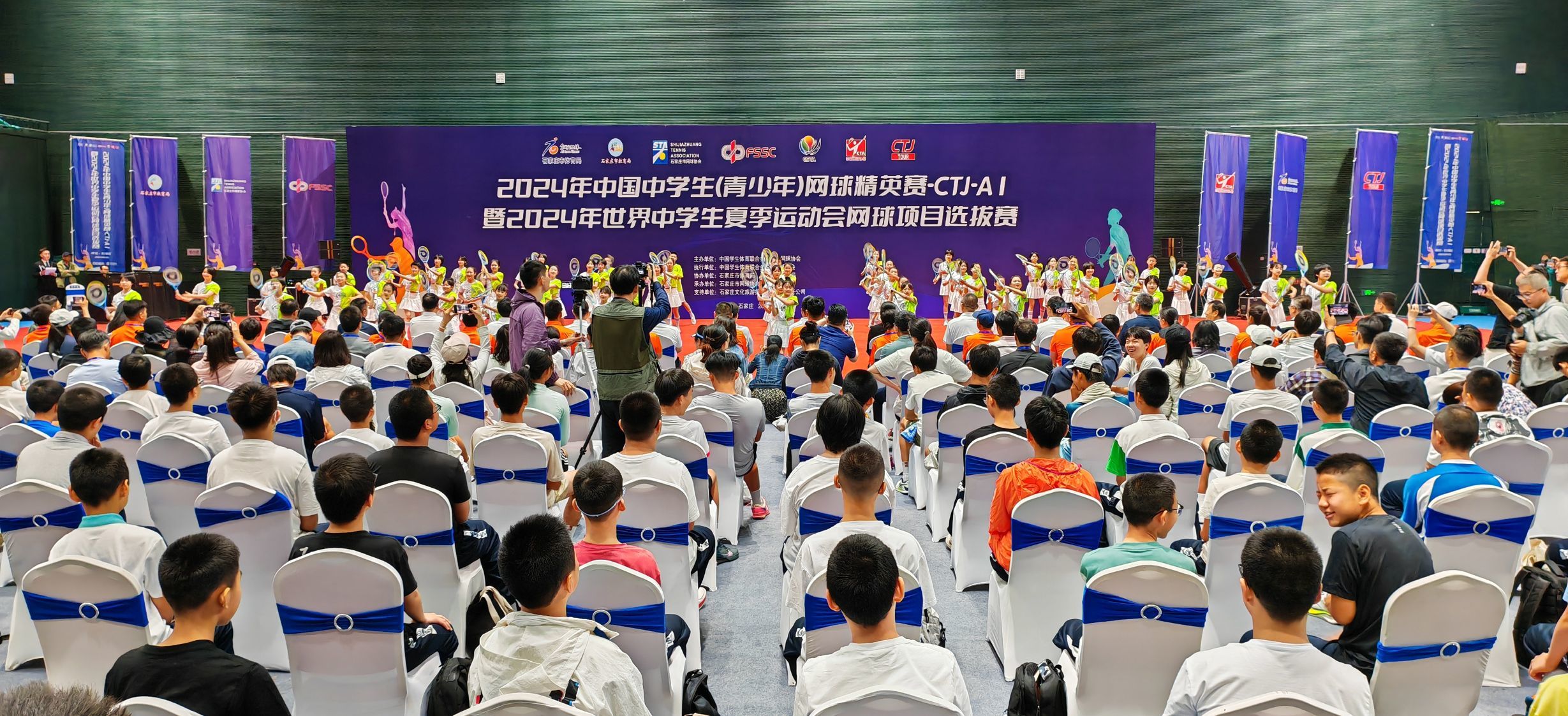 5月8日,2024年中国中学生(青少年)网球精英赛在石家庄开赛。图为开幕式现场。 河北日报记者王伟宏摄