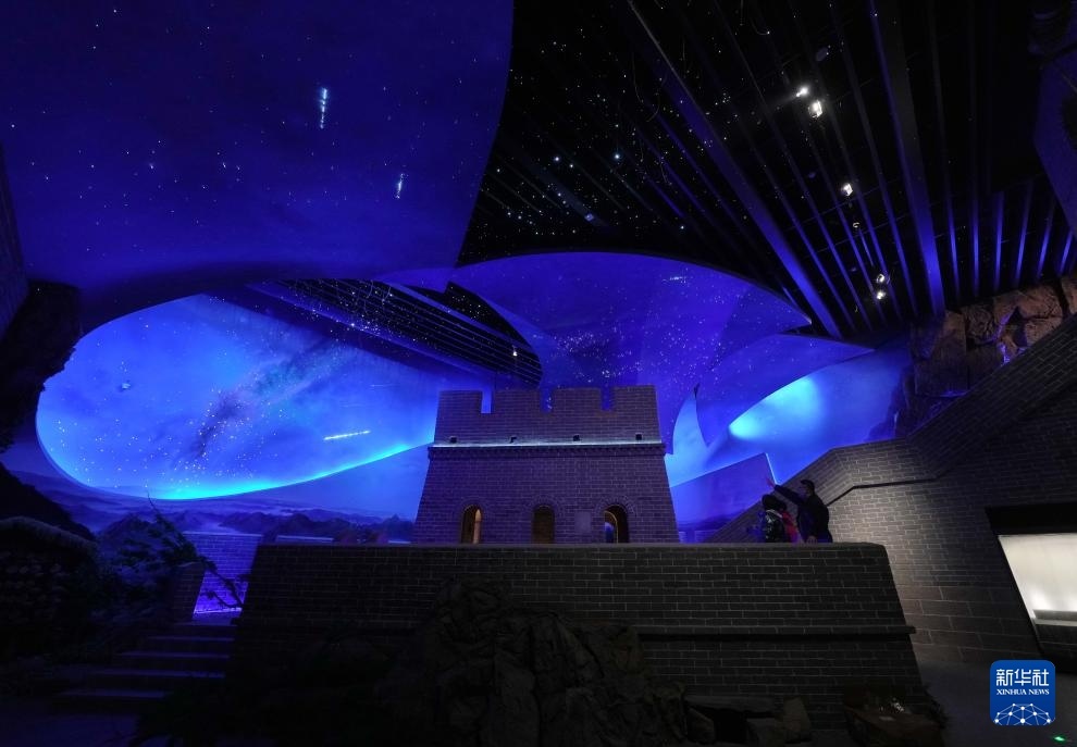4月11日,工人在山海关中国长城博物馆展厅察看灯光效果。新华社记者杨世尧摄
