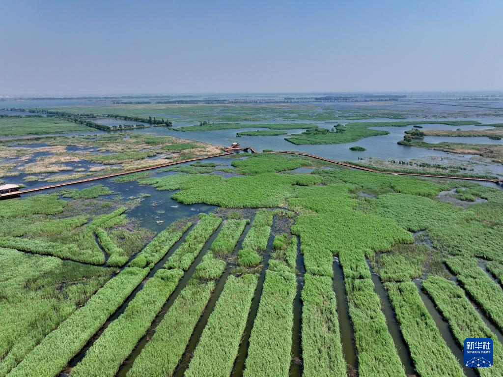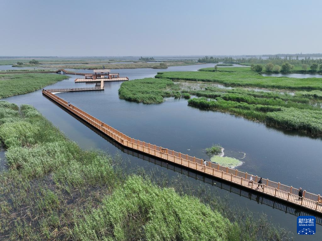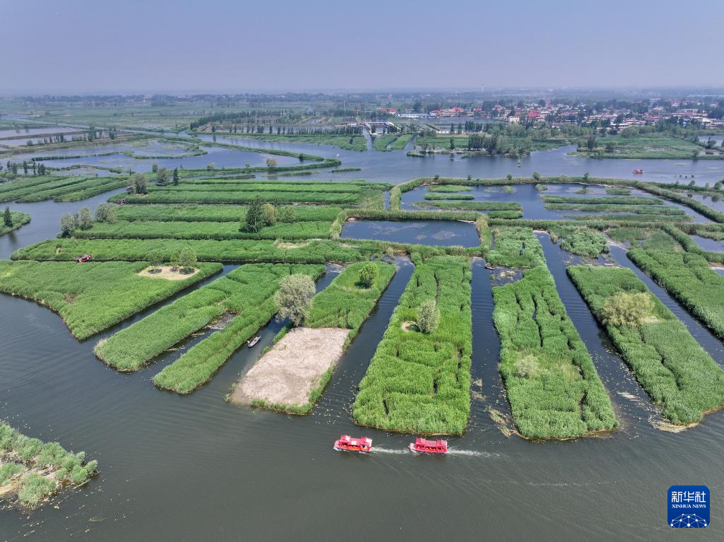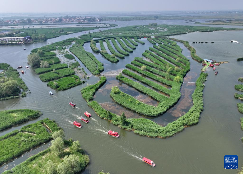 初夏时节,河北雄安新区白洋淀内天蓝水清、芦苇鲜绿,游船往来穿梭,构成一幅“城淀相依、共生共融”的美丽画卷。近年来,河北坚持系统治理,加强白洋淀生态修复保护,截至2023年,白洋淀水质连续三年保持Ⅲ类,重现“华北明珠”风采。