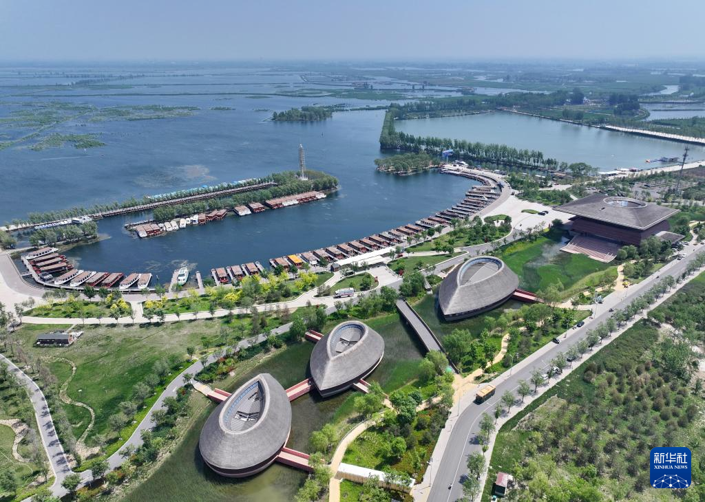 这是雄安新区白洋淀旅游码头景色(5月8日摄,无人机照片)。 新华社记者牟宇摄