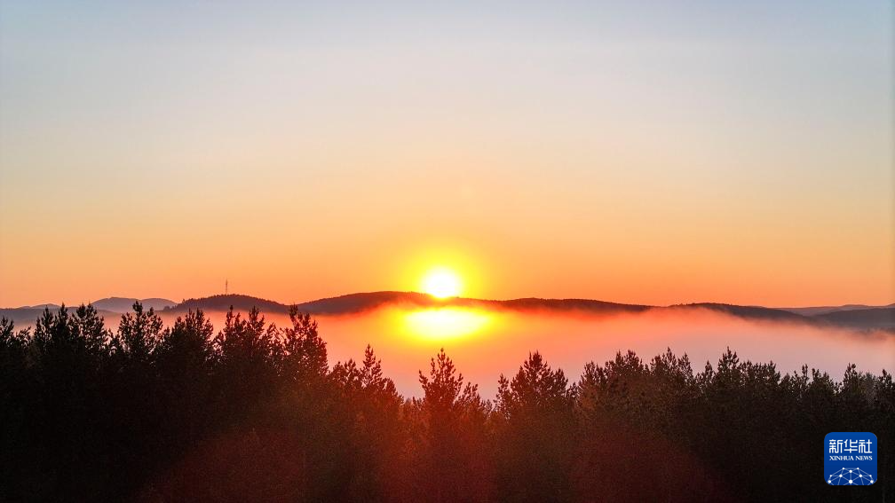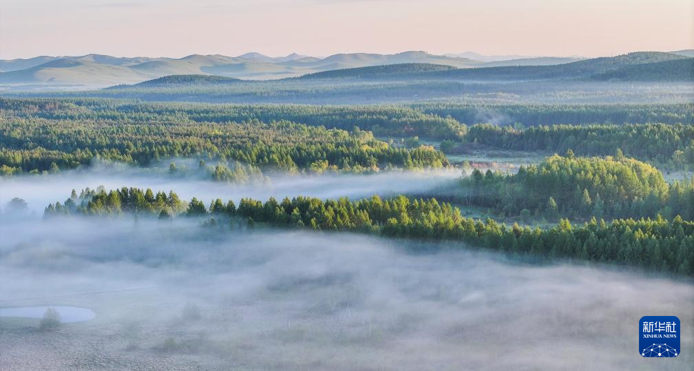 6月1日拍摄的河北塞罕坝国家森林公园晨景(无人机照片)。 新华社发(刘满仓 摄)