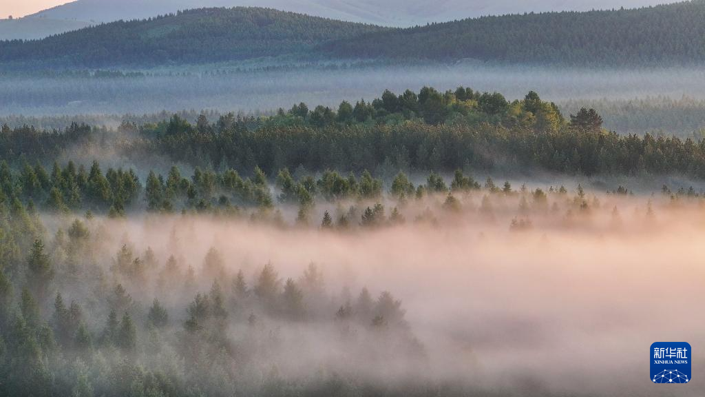 夏日清晨,位于河北省承德市围场满族蒙古族自治县境内的塞罕坝国家森林公园晨光映照,林海浩渺,景美如画。