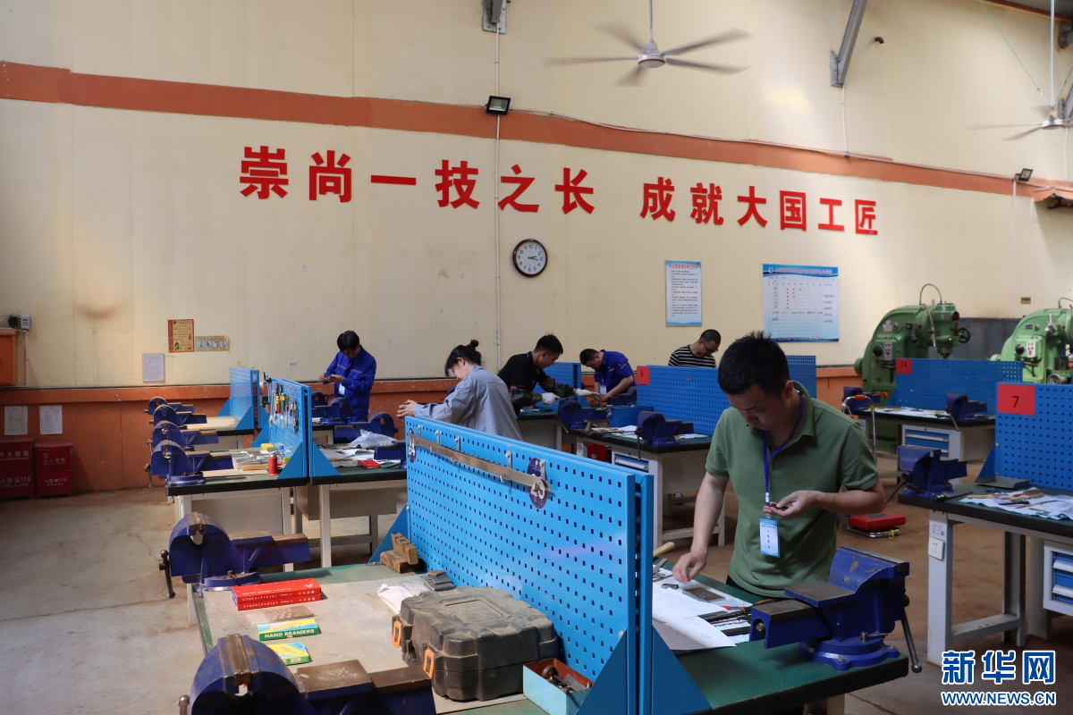 装配零件加工项目比赛现场,参赛选手们专心比赛。新华网发 陈雷 摄