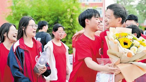 6月9日下午,高考宁晋中学考点,最后一门科目考试结束后,考生与前来迎接的老师拥抱。当日,我省2024年高考结束。 河北日报记者 赵永辉摄