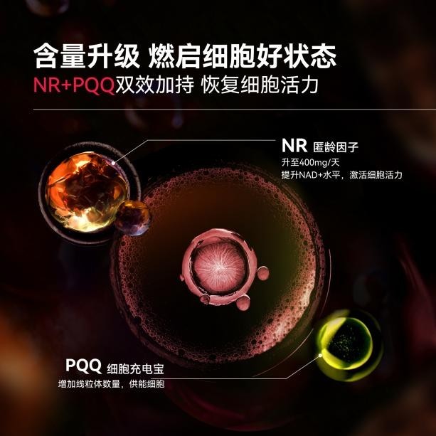 更进一步地,乐返盾在原有配方的基础上添加了PQQ(吡咯喹啉醌),这一新一代线粒体激活剂。PQQ在线粒体呼吸链中发挥着不可或缺的作用,能够积极参与氧化还原反应,显著提升线粒体的数量。线粒体是细胞内的“能量工厂”,其数量的增加意味着更多的能量供给和更好的代谢效率。同时,PQQ在神经元保护和抗炎方面也展现出了卓越的效果,为身体提供了全方位的保护。