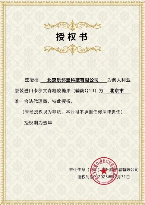 卡尔文森凝胶糖果北京地区由北京乐邻堂科技有限公司总代理