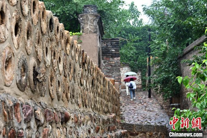 7月2日,河北省石家庄市井陉县南横口村,用废弃窑具砌筑的墙体随处可见。 中新网记者 翟羽佳 摄