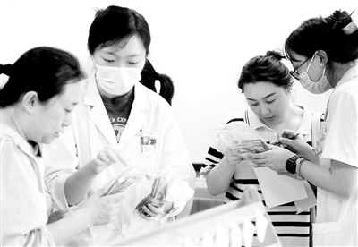 昨日上午7点半,北京中医医院儿科全体医务人员早早便已“就位”。北青报记者在儿科诊区看到,前来贴三伏贴的孩子不在少数,贴完之后医生还会向家长仔细叮嘱注意事项。不过,与往年满楼道都是贴敷的孩子相比,今年通过提前预约、提前开药等举措,前来贴敷的人流被分散开,就诊秩序井然,专门开设的贴敷诊室也让就诊变得更方便。