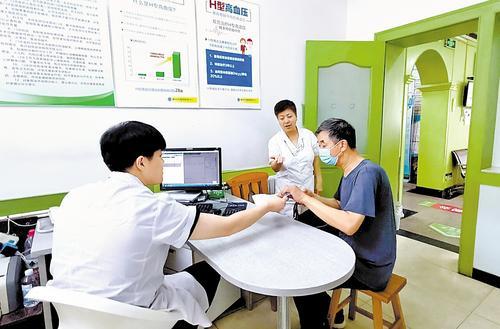 7月12日,在廊坊市花园楼社区医养结合服务中心,医生为社区老人进行诊疗。本报记者 刘英摄