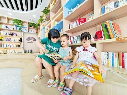 7月27日上午,南文营社区党群服务中心里,一位妈妈带着孩子在图书角读书。本报记者 田 明摄
