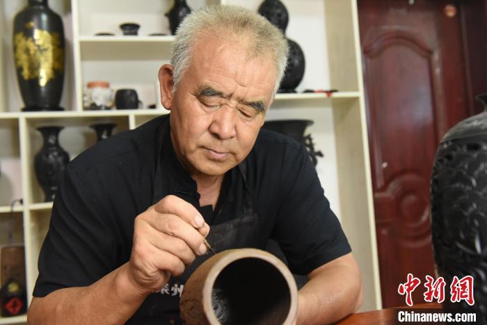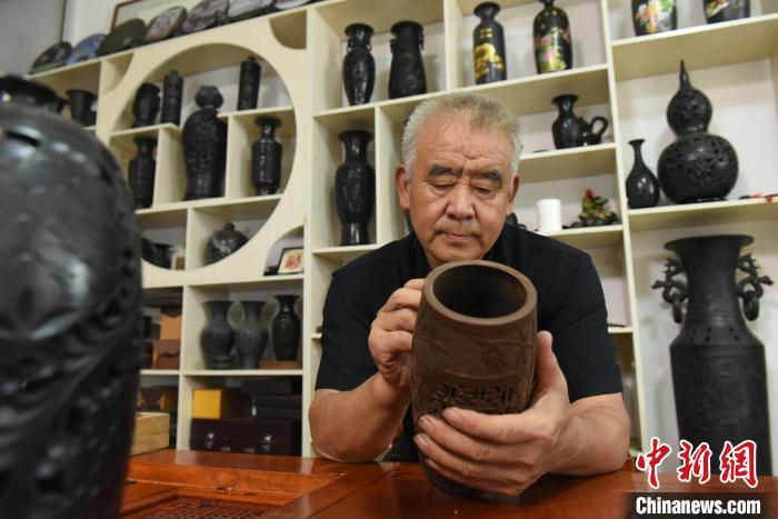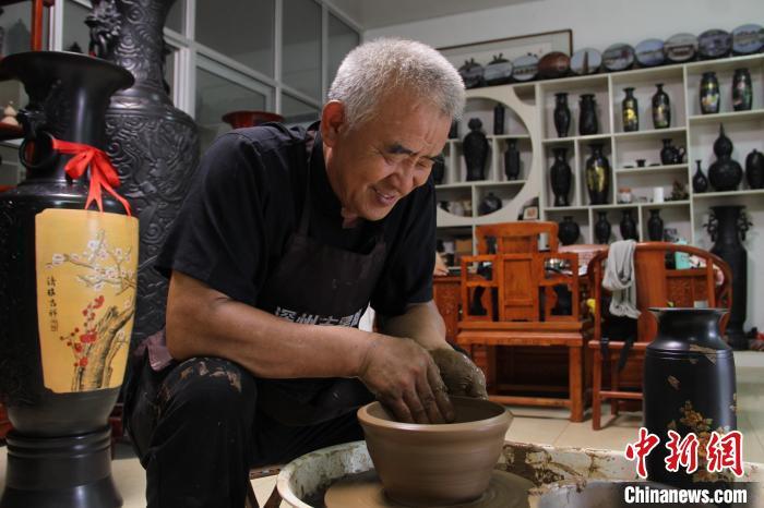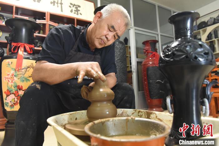 原标题:河北深州六旬手艺人80多道工序制作黑陶 产品畅销海内外