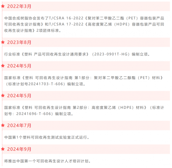 《塑料可回收再生设计指南》 第1部分:聚对苯二甲酸乙二醇酯(PET)材料》(标准计划号20241703-T-606)和《塑料 可回收再生设计指南