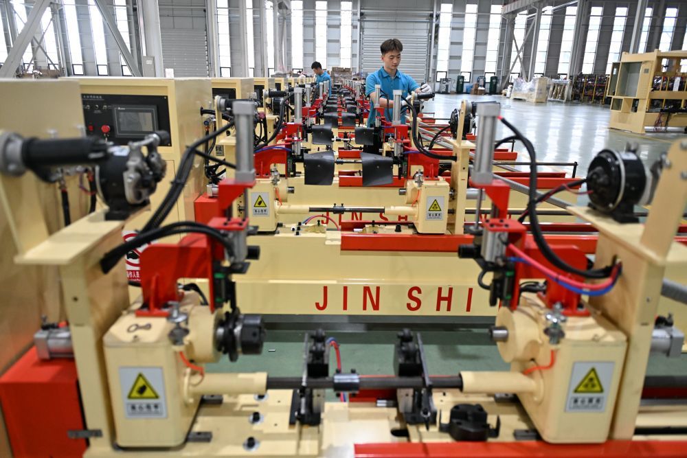 ↑9月13日,工人在位于任丘市的河北新铁虎石油机械有限公司车间内工作。