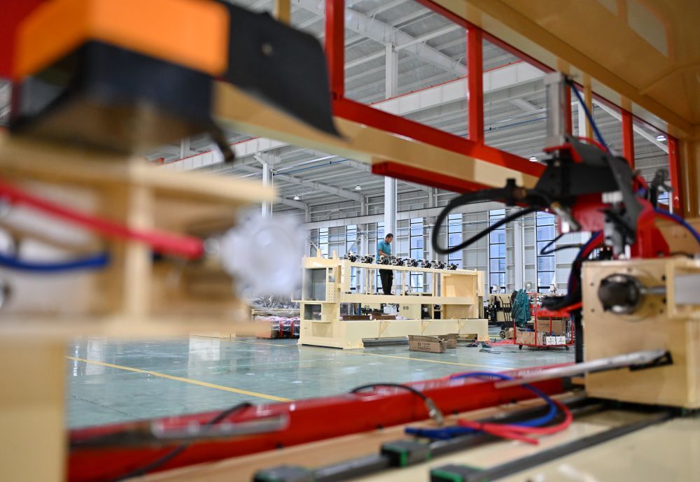↑9月13日,工人在位于任丘市的金狮智能机器人有限公司生产车间内工作。