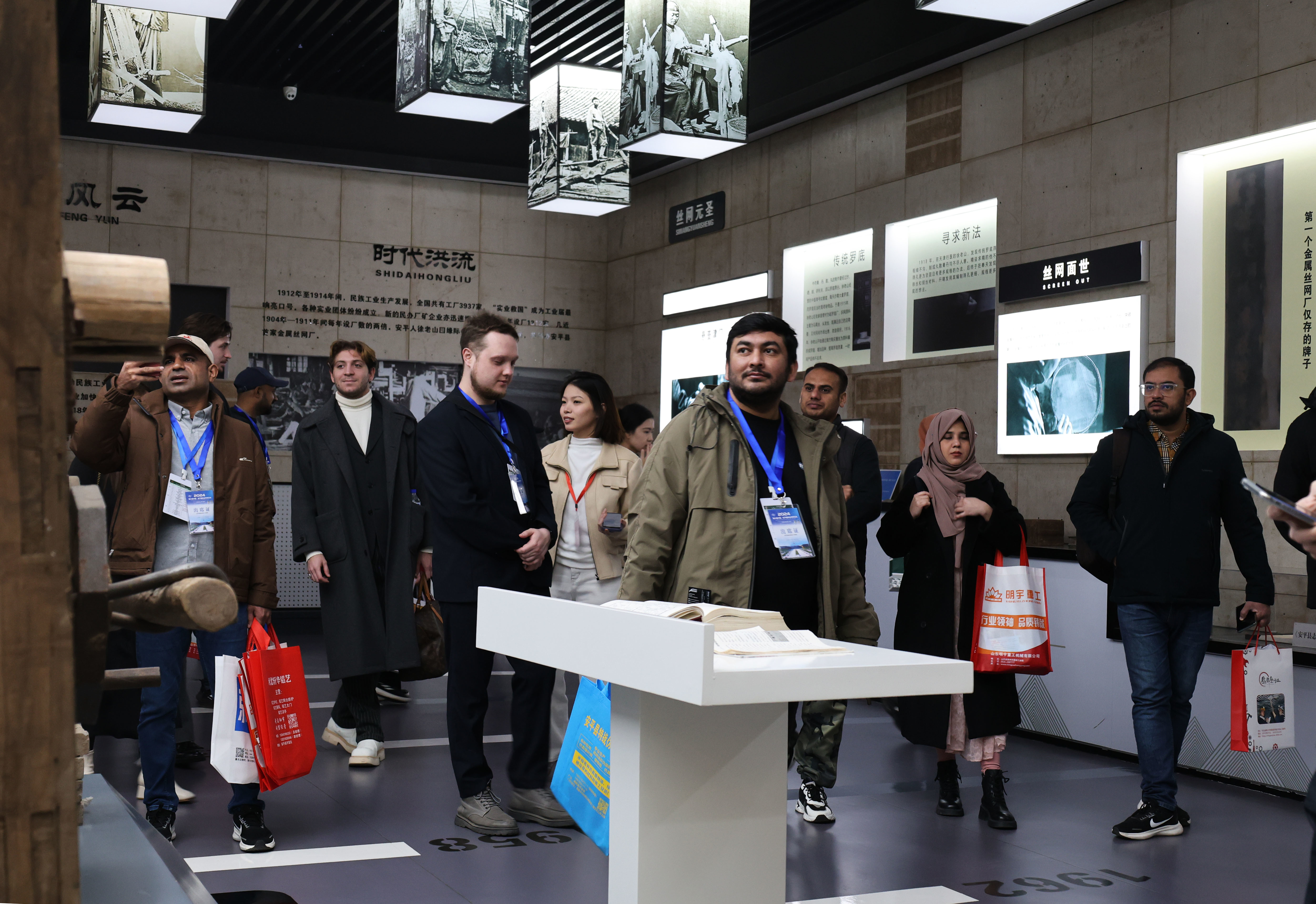 安平国际丝网展览馆内热闹非凡,鲜花丝网造型绚丽夺目,彩色丝网“服装”引领时尚潮流……各类丝网展品琳琅满目,让人目不暇接,宾客们仿佛穿越了时光的隧道,深深地沉浸在丝网这一传统产业的独特魅力之中。他们有的驻足凝视,眼中闪烁着好奇与惊叹的光芒;有的轻轻拿起展品,感受着丝网的细腻质感,仿佛在与历史对话。