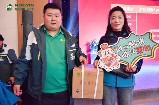 活动现场,除了有具备行业前瞻性的分享、镇店的好产品,更有万众期待的“茅台盛宴”。公司销委会主席郭争果女士上台介绍订货政策后,正式宣布茅台盛宴开启,现场客户踊跃订货,随着骰子落地,现场惊呼声不断,有人抱回一箱茅台,有人抱回两箱茅台,订货的火热氛围愈发高涨。