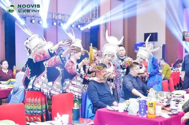 白天的嘉年华干货满满,夜晚风情晚宴欢乐不断。拦门酒,苗族舞蹈、高山流水,特色美食,在这片山水相依的灵秀之地,来自新疆的朋友们尽情体验了一次贵州风情。