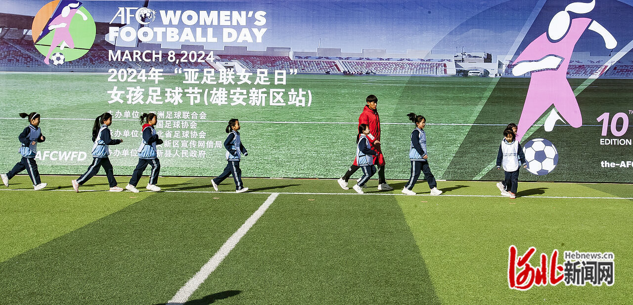 3月 8日,2024年“亚足联女足日”女孩足球节(雄安新区站)在雄安足球半岛举行,雄安女孩在各项足球游戏中尽享运动乐趣。 河北日报记者 刘光昱 摄
