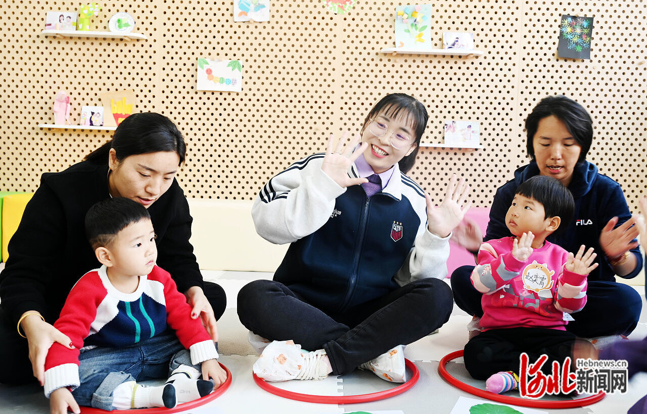 10月23日,雄安新区容东片区双文社区享趣智汇馆,附近幼儿园老师正在给孩子们上早教课。 河北日报记者 刘光昱 摄