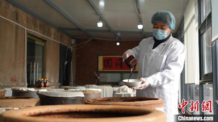 12月6日,在河北省秦皇岛市丰泽园酱业有限公司内,工人对酿制的酱油进行查看。这家“河北老字号”坚持纯粮酿造,产品畅销全国各地。近年来,秦皇岛市山海关区因地制宜,深挖百年酱业文化资源,扶持和发展传统酿造产业同时,同步推广当地历史文化、地域特色、民俗风情,将产品销售与文化传播、旅游带动相结合,打造出一种全新的销售模式和产业链条。代明君 摄