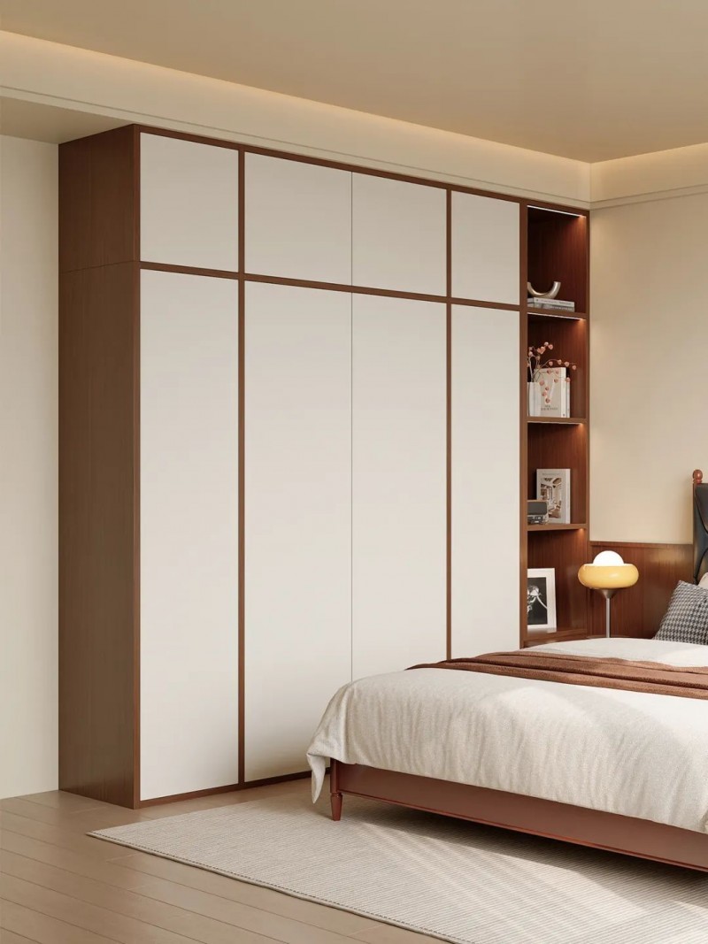 ①衣柜顶天立地,内侧留空,增加展示区,增添层次感;