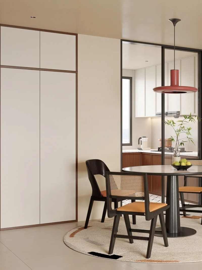 ②微醺梅子色柜门如灵动一笔,在复古底色上晕染现代感,实用与美观相得益彰。