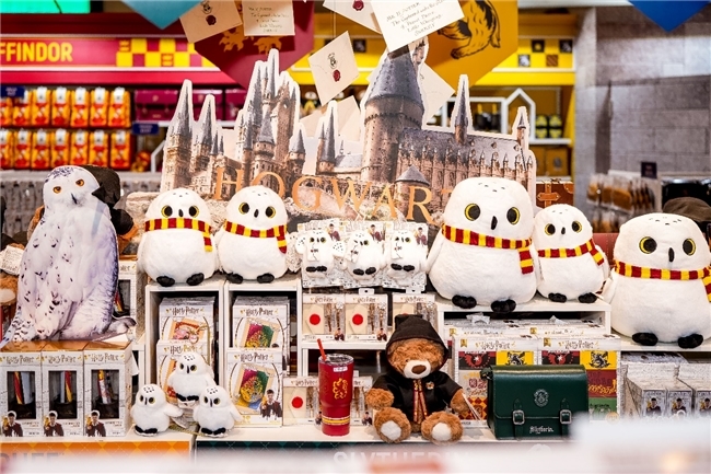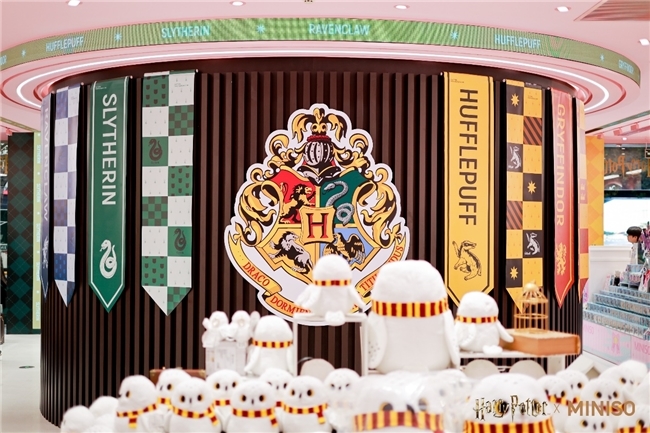 步入名创优品MINISO联名主题店,哈迷们瞬间被浓厚的魔法气息包围,仿佛置身于霍格沃茨魔法学校中。从天花板垂挂的魔法装饰,到地面铺设的魔法图案,再到货架上的各类联名产品,店内装饰细节处处体现哈利·波特电影元素。货架更是根据霍格沃茨的四个学院——格兰芬多、赫奇帕奇、拉文克劳和斯莱特林进行巧妙分区,每个区域都展示了与该学院特色相符的联名产品,让消费者能够深入体验各个学院的独特魅力,并轻松选购心仪商品。