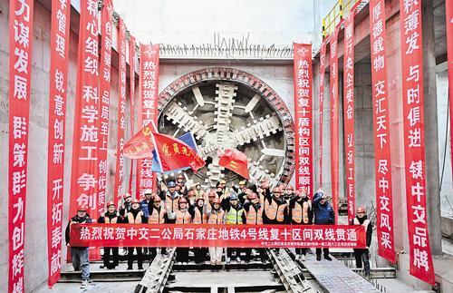 12月13日,伴随着复兴路站至十里铺西街站区间左线盾构顺利接收,石家庄地铁4号线一期工程最长区间实现隧道双线贯通。 本报记者 史晟全摄