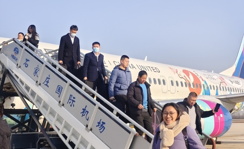 此次“正定号”全彩绘飞机机型为B737-800,执行温州-石家庄-包头航班。首航航班上,结合“这么近 那么美 周末到河北”主题,中国联合航空精心策划了丰富的客舱活动,乘坐“正定号”首航的众多旅客收到了精美的首航纪念品,机上氛围其乐融融。与此同时,石家庄机场航站楼内年终航空旅游集市活动如火如荼,机场、航空公司、文旅部门、OTA平台共同为旅客提供了航线产品、机票产品、服务产品以及省内各地特色旅游等现场咨询和推介,机上机下活动交相辉映,营造了浓厚的氛围。