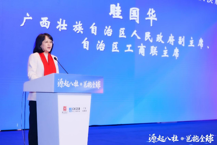 广西壮族自治区人民政府副主席,自治区工商业联合会主席眭国华在会上作指导发言。眭主席代表自治区工商联,对桂商总会新一届服务团队的当选表示热烈祝贺,并对桂商总会对广西经济发展作出的贡献表达了肯定。谈及未来,眭主席满怀期许,希望桂商总会在党的建设、政治引领、服务功能、履行社会责任、治理能力等方面勇争一流,力争做工商联所属商会建设的标杆示范。