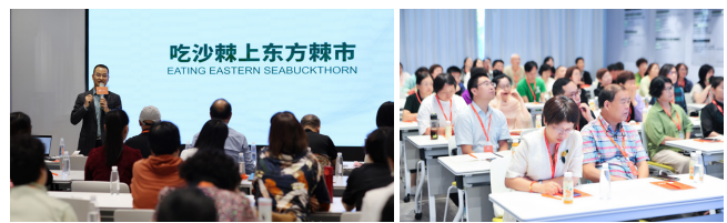 她收集查阅大量沙棘研究论文与沙棘科普专业书籍,对沙棘的神奇力量了解得更为全面深刻。怀着对沙棘的敬畏与热爱,她加入了国际沙棘协会,成为其中的一员。通过协会的交流与分享,她更加坚定地认为:这样一种集生态效益、健康效益、经济效益、社会效益为一体的植物,应该让更多人认知。于是,她踏上了沙棘的传道之路。5年里,为了让大众了解沙棘对大地与人类的作用,她先后购买了数百本沙棘科普书籍,送给同事、朋友,甚至旅途中的陌生人。即使三年疫情期间,从白山黑水到海岛边陲,从西北沙漠到都市江南,都留下了她传播沙棘的身影与足迹。