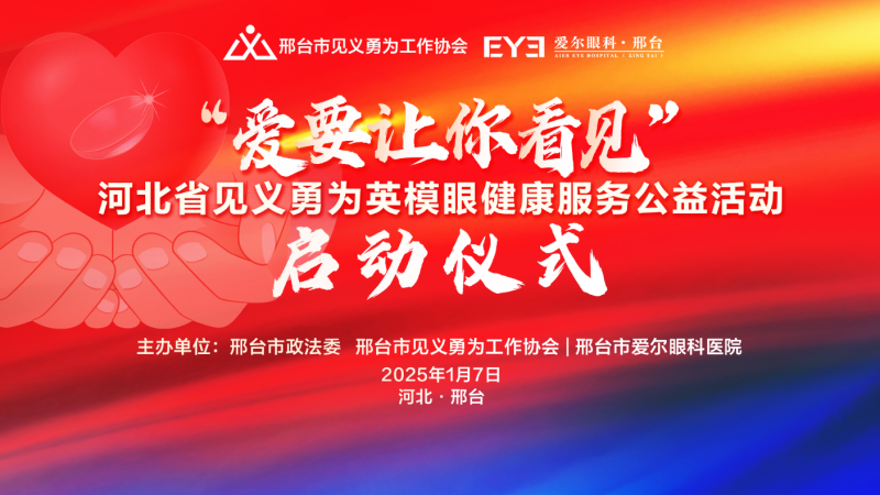 2025年1月7日,“爱要让你看见”邢台市见义勇为英模眼健康服务公益活动,在邢台爱尔眼科医院正式启动。此次活动由河北省见义勇为基金会联合爱尔眼科医院集团河北省区11家地市级医院共同发起,发扬中华民族传统美德,弘扬社会正气,推动社会主义精神文明建设。