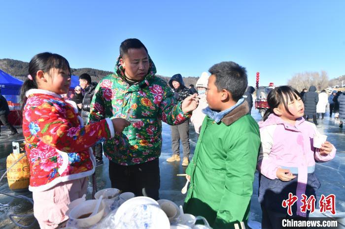 1月11日,围场冬捕活动现场,游客品尝炖好的鲜鱼。 孙占军 摄