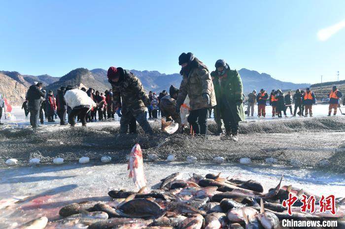 中新网承德1月11日电 (张桂芹 闫雪 陈杰)1月11日,2025河北省围场满族蒙古族自治县第三届“木兰围场冬捕季”在围场钓鱼台水库开幕。