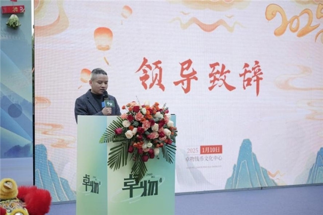 卓物钱币文化中心董事长、卓物钱币博物馆馆长陈苏庆先生在致辞中深情回顾,从精心创立阿一收藏品、中泉修复、中晟拍卖,中晟在线、到卓物钱币文化中心惊艳亮相,这一路,我们步履不停,业务版图持续拓展。创业之初,我们聚焦于纸币领域,潜心钻研,随着经验的积累和实力的增强,如今的卓物实现了质的飞跃。同时,我们也敏锐洞察时代脉搏,积极拥抱钱币文创与直播融合的新趋势,不断探索创新发展模式。我们立志将卓物打造成为行业内的领军品牌,树立全新的行业标杆,传播钱币文化,引领钱币收藏行业迈向更加辉煌的未来。