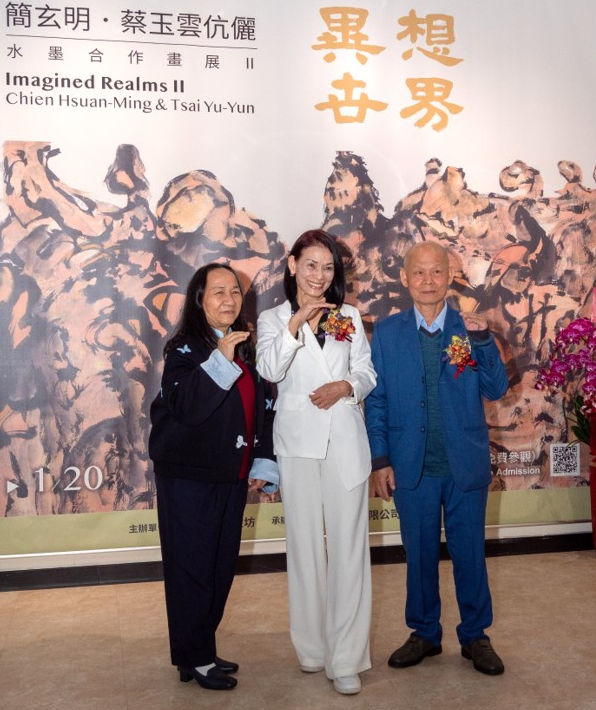 台北市中国画学研究会理事长吴欐樱,于1月10日受资深会员简玄明、蔡玉云伉俪的邀请,出席在台北中正纪念堂4展厅「异想世界 — 简玄明・蔡玉云伉俪水墨合作画展II」开幕式。吴欐樱表示这场夫妻联展是系列第二度展出,共有三十余幅画作,是他们多年行旅与创作的心血结晶,也是一场跨越时空与文化的对话。简玄明、蔡玉云伉俪无论是在创作过程中,或是在表现形式上,都显示出他们对生命、大自然与内心世界深刻的感悟与表达。