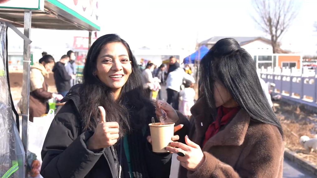 逛大集作为中国北方春节的传统习俗,一直以来都承载着浓浓的年味。北戴河区戴河镇北戴河村的年文化市集内,人头攒动,热闹非凡。留学生们穿梭在各个摊位之间,或是品尝美食,或是与摊主热切交流,沉浸在这充满烟火气的节日氛围中。