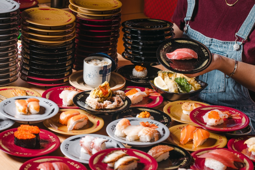 寿司郎还在部分门店导入了“Digiro数字回转寿司系统”,通过超大型电子屏幕实现“数字回转”,顾客轻触菜品图片即可点餐,菜品通过专属传送链条送至顾客餐桌。这一革新技术不仅简化了点餐流程,更提升了回转寿司的趣味性。