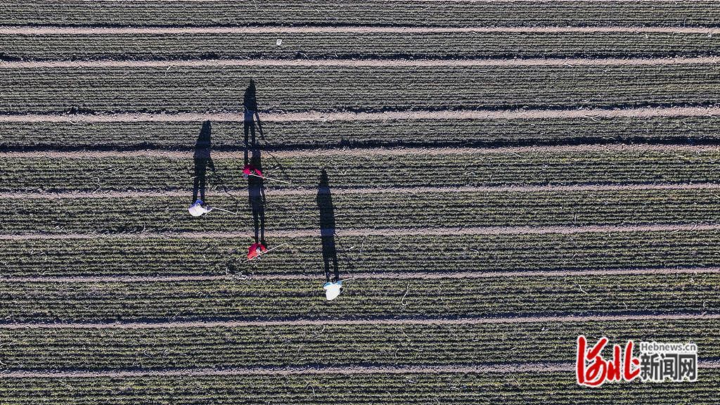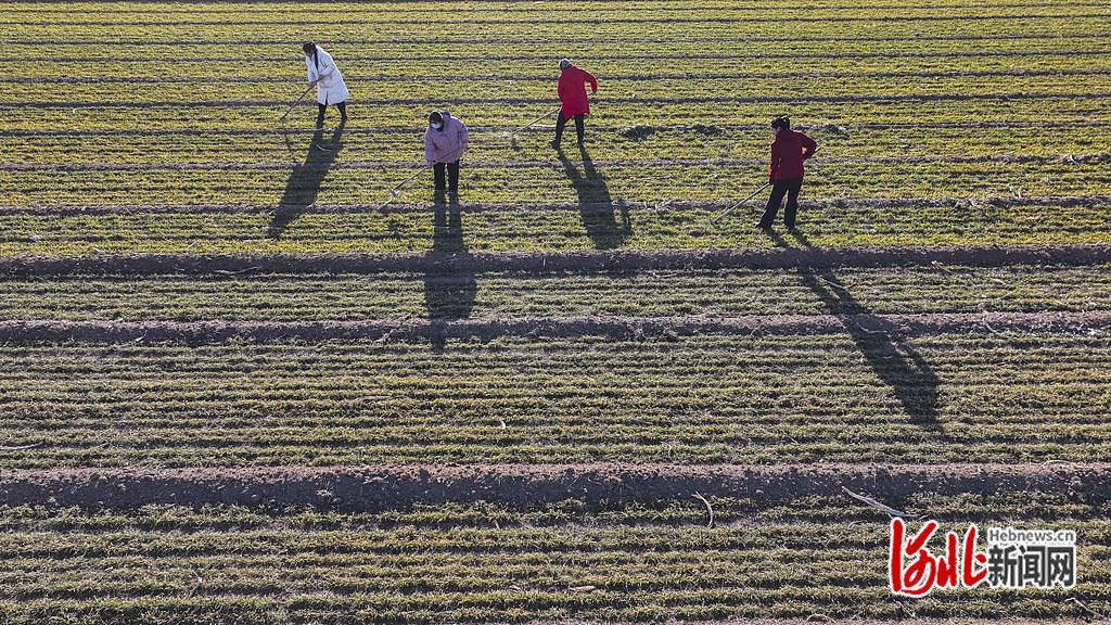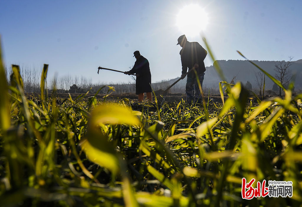 2月20日,遵化市刘备寨乡牛角峪村农民在麦田劳作。