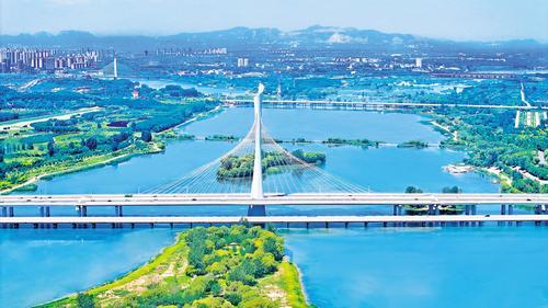 2024年7月18日,石家庄市滹沱河水清岸绿。