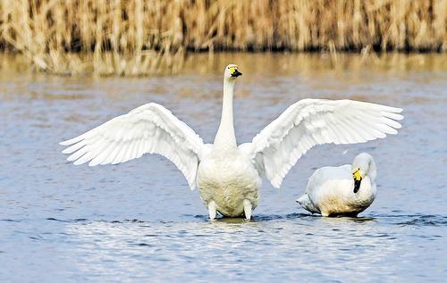 2月27日,白天鹅在衡水湖自然保护区栖息。
