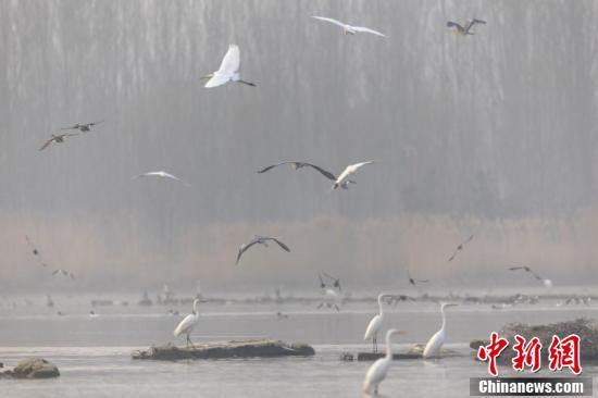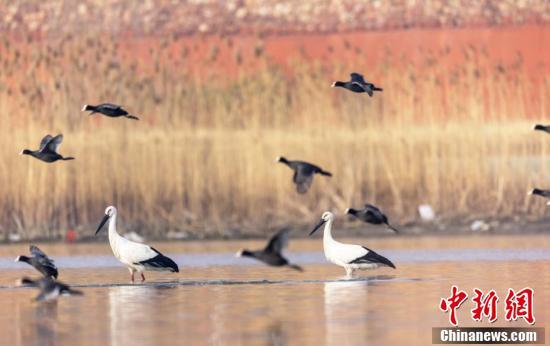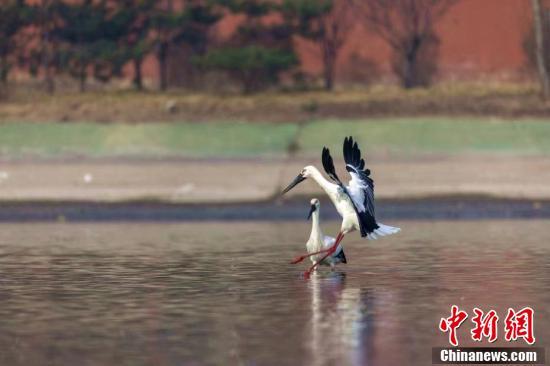 河北省林业和草原局13日消息,河北涉县清漳河国家湿地公园管护人员近日在日常巡护过程中,发现了数只在湿地水域觅食的国家一级保护动物东方白鹳,这是该公园自2015年建设以来,第一次拍摄到东方白鹳活动画面,也是涉县境内首次记录到东方白鹳身影。图为3月11日,东方白鹳飞临水面。
