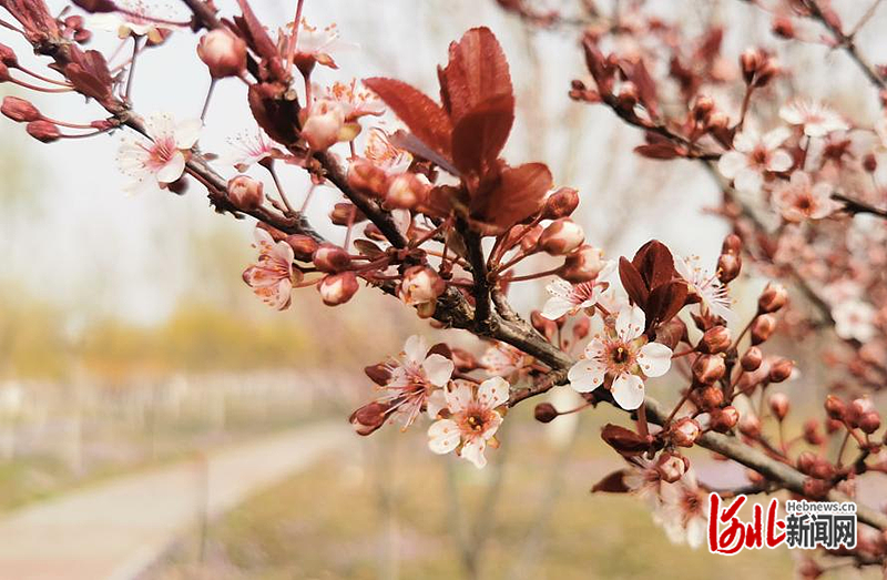 可赏花卉:紫叶李,花期:4月