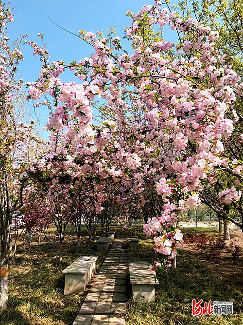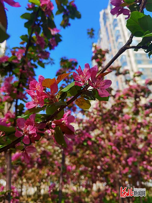 可赏花卉:西府海棠,花期:3月下旬至4月