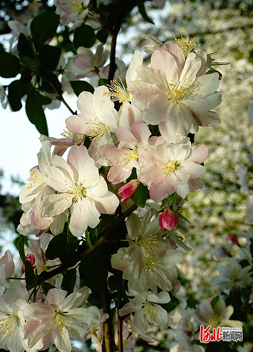 可赏花卉:北美海棠,花期:3月下旬至4月