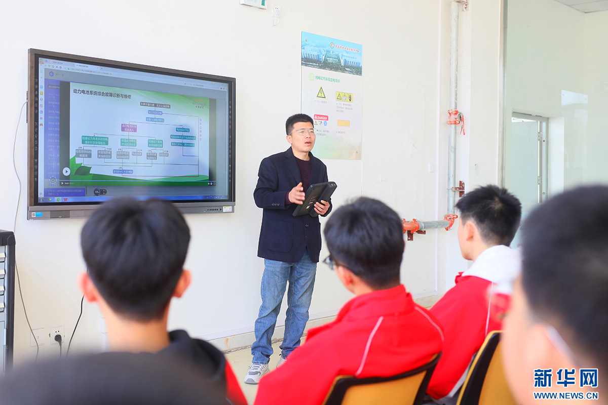 南宫市职教中心汽车运用与维修专业学生在学习汽车维修技术。新华网发 田优 摄
