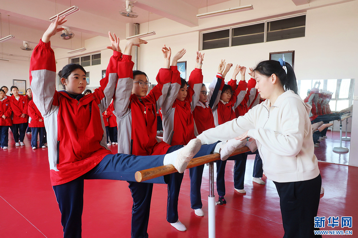 南宫市职教中心幼儿保育专业学生在练习舞蹈。新华网发 田优 摄