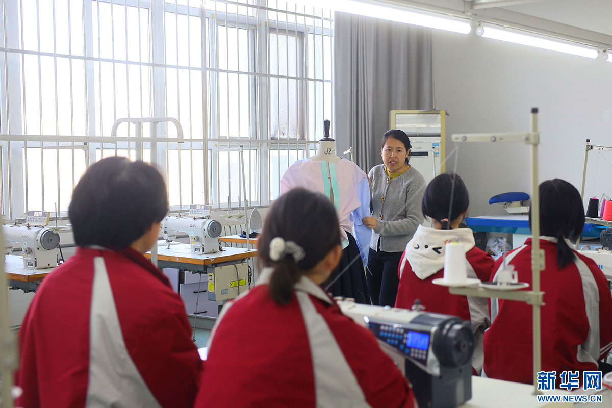 南宫市职教中心服装制作与生产管理专业学生在学习服装设计。新华网发 田优 摄