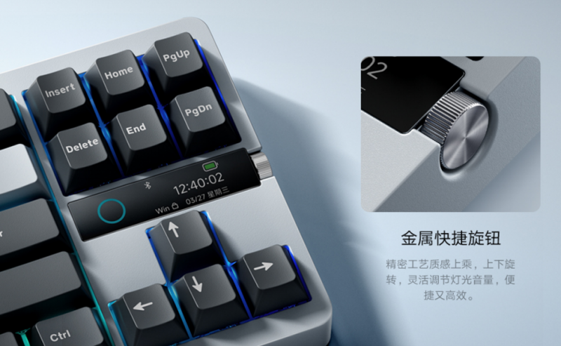 机械键盘不仅是工具,更是桌面的个性宣言。小米机械键盘MK71 Pro创新加入1英寸LCD屏,实时显示时间、电量、连接状态,还能自定义GIF动画和图片,真正成为用户专属的个性化机械键盘。搭配金属质感旋钮,轻旋即可调节音量或切换灯效。冰川与月岩双色设计,碰撞出科幻未来感。